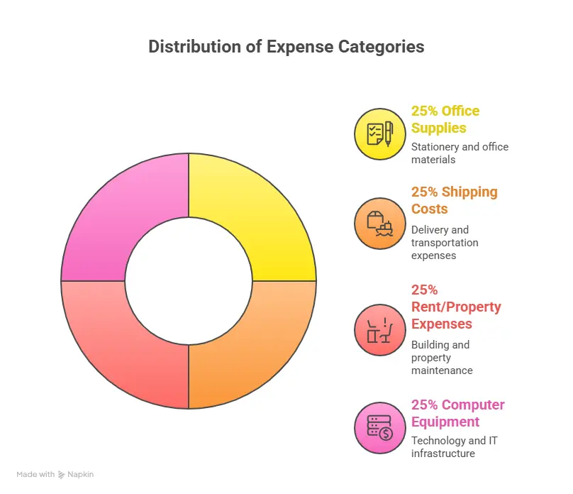 Create a consistent categorization system aligned with IRS Schedule C categories for sole proprietors or your entity type’s requirements. Standard categories include: